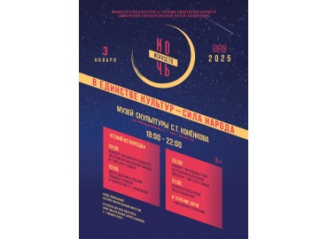 Музей скульптуры С.Т. Конёнкова подготовил для посетителей обзорные экскурсии, викторины и концерты. Перед гостями выступят ансамбль учащихся и преподаватели Детской музыкальной школы № 1 им. М.И. Глинки. В рамках «Ночи искусств» состоится показ документальной хроники о жизни и творчестве Сергея Тимофеевича Конёнкова.