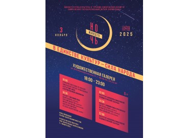 В Художественной галерее откроется выставка из фондов Смоленского музея-заповедника «Тут и там: окно в отечественной живописи». Музыкальную программу «Осенний сон» для гостей представят Юлия Левина (сопрано), Евгений Мишутин (баритон), Ирина Гончарова (фортепиано), Светлана Фирсова и Елена Андреенкова (домра). С концертом «Киномузыка при свечах» выступят Светлана Арина (скрипка), Мария Веселенская (скрипка), Анна Новикова (фортепиано). В ходе тематической экскурсии гости вечера познакомятся с шедеврами галереи.