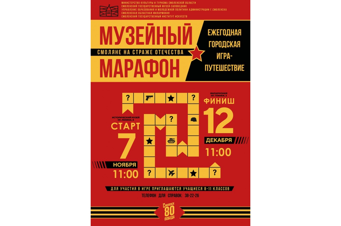 Познавательная игра для учащихся 8-11 классов общеобразовательных школ Смоленска в 2025 году получила название «Музейный марафон. Смоляне на страже Отечества».