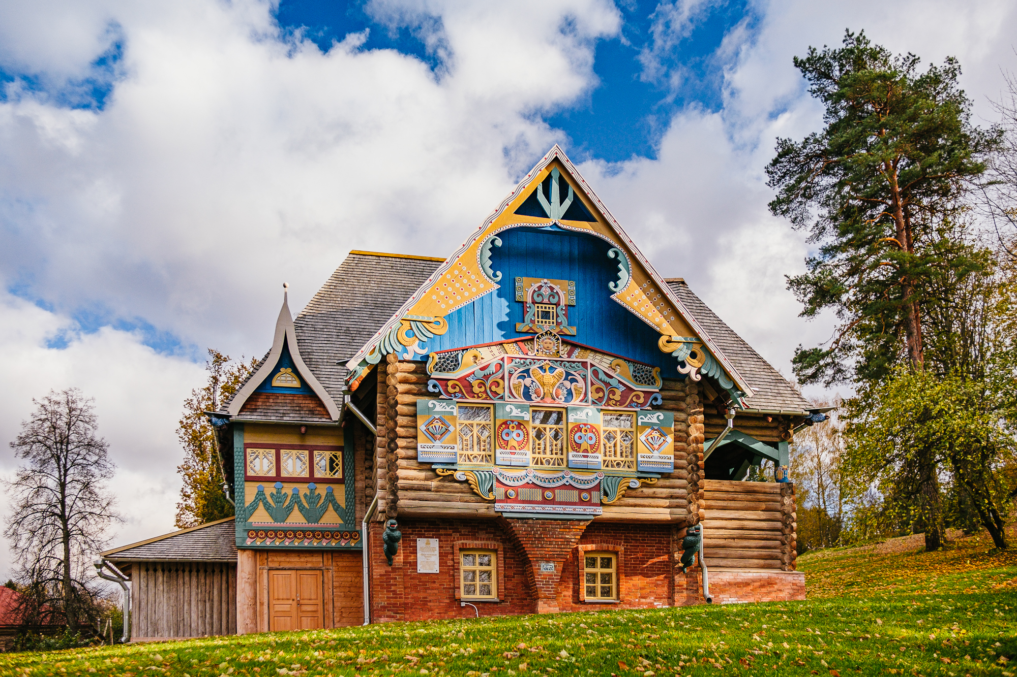 Еще одна из достопримечательностей Талашкино – знаменитый сказочный домик «Теремок». Это бревенчатое сооружение, выполненное по проекту Сергея Малютина, представляет собой подлинный шедевр русского малого зодчества. Окна, двери, карнизы, наличники – все искусно выпилено, ажурно вырезано. Яркая раскраска, сказочные мотивы на фасадах создают образ праздничный и фантастический. В «Теремке» можно увидеть изделия талашкинских мастерских и, конечно же, произведения тех, кто принес Талашкино славу, – мебель, изготовленную по эскизам С.В.Малютина, акварели М.А.Врубеля, керамику Н.К.Рериха, расписные балалайки, произведшие фурор на Всемирной выставке в Париже.