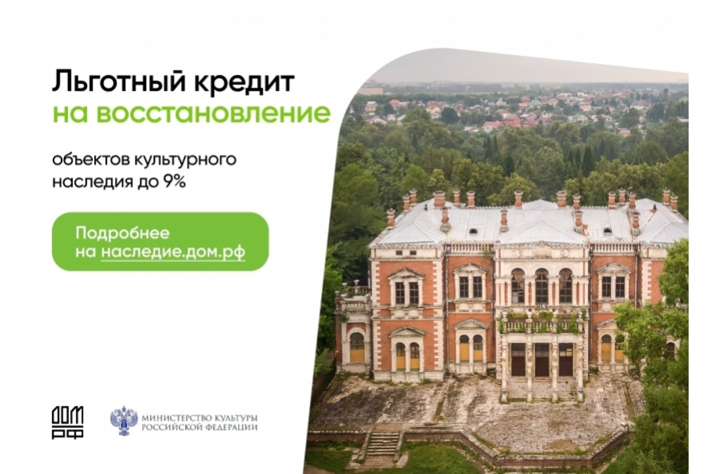 Программа льготного кредитования инвесторов, восстанавливающих объекты культурного наследия, также реализуется АО «ДОМ.РФ».