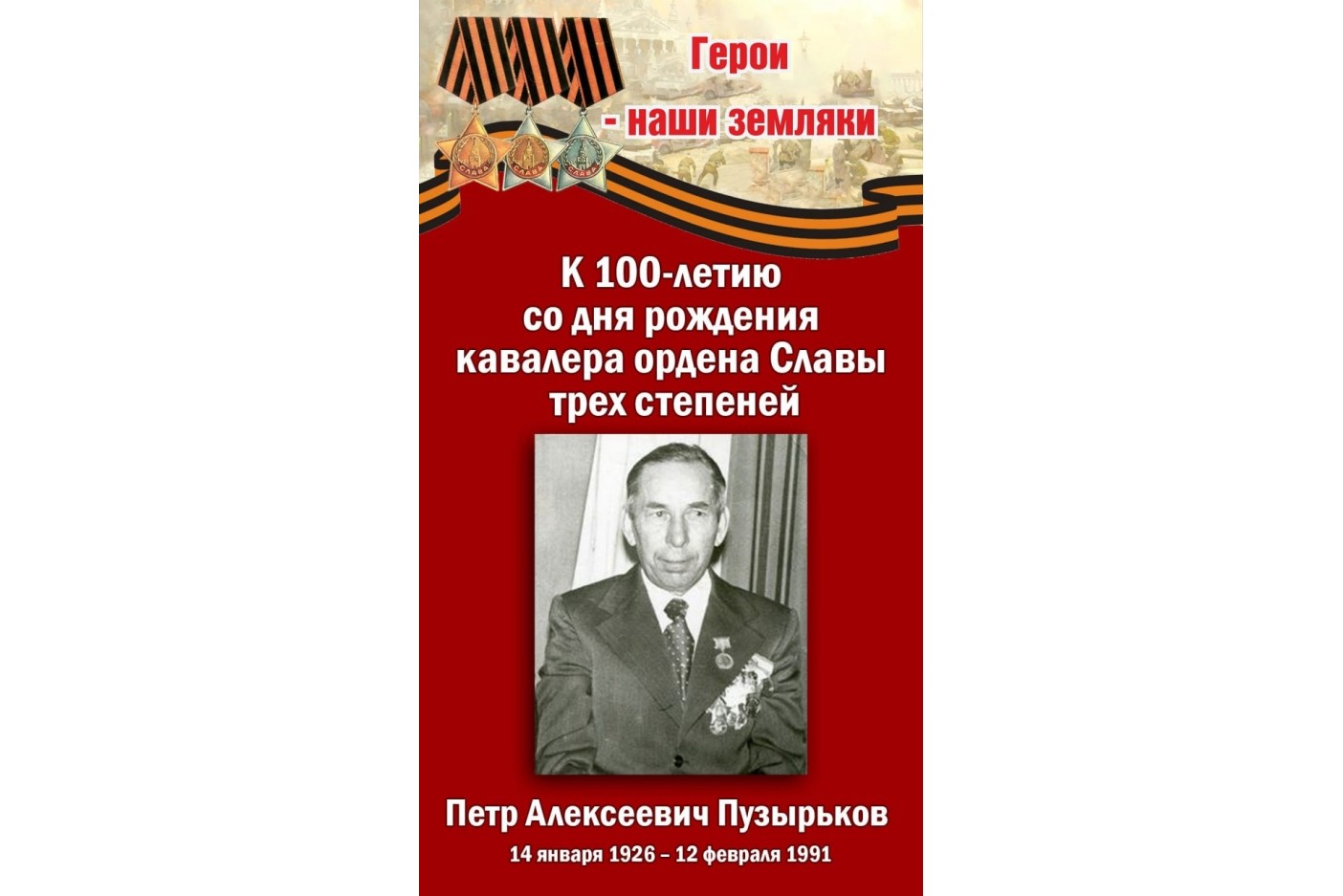 К 100-летию со дня рождения кавалера ордена Славы трех степеней Петра Алексеевича Пузырькова