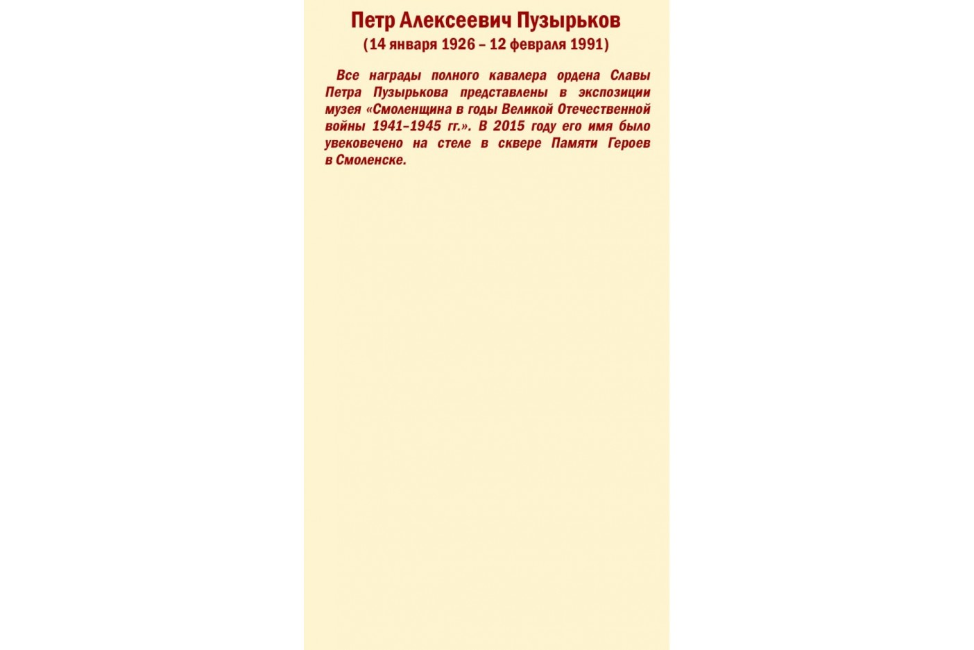 - К 100-летию со дня рождения кавалера ордена Славы трех степеней Петра Алексеевича Пузырькова