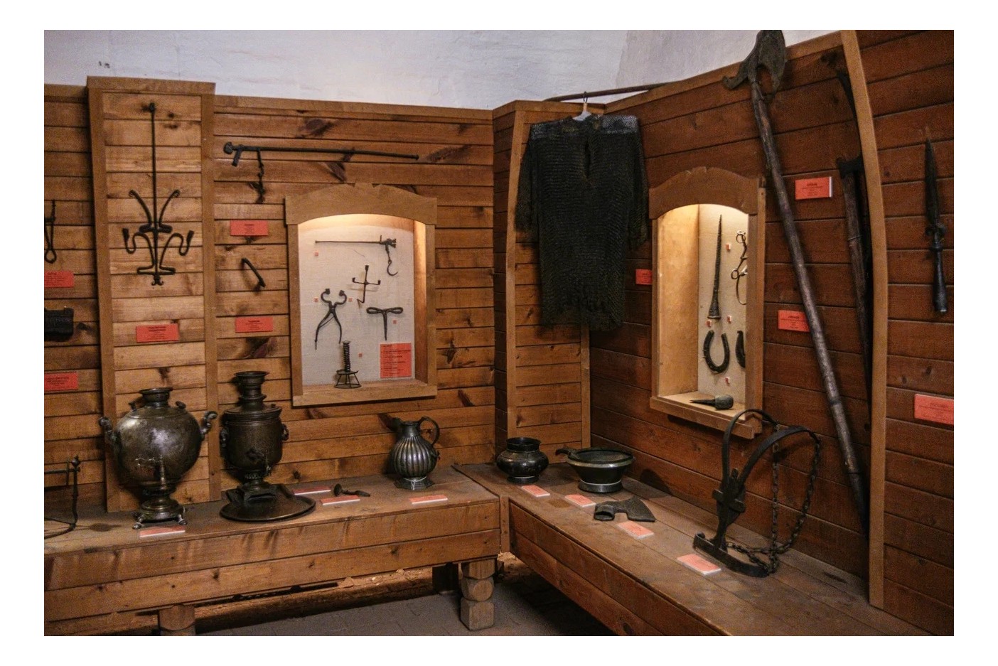 Гости музея узнают об истории знаменитого древнерусского доспеха – кольчуги. Кольчуга – это защитное снаряжение, сплетённое из железных колец и предназначенное для защиты от поражения холодным оружием.