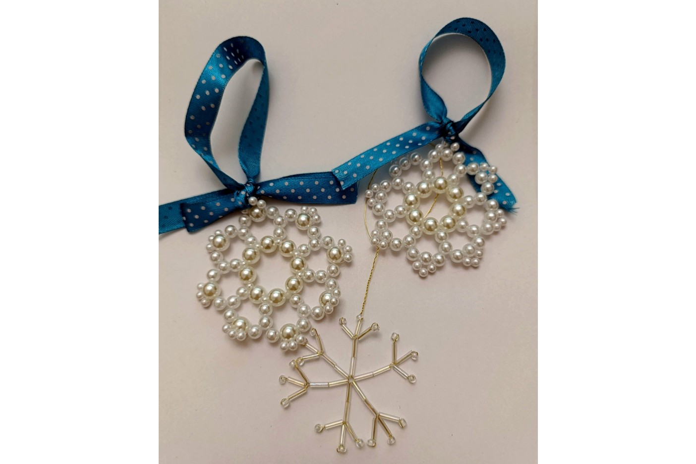 Из белых бусин и стекляруса, которые идеально имитируют снег, вы сможете создать снежинку своими руками. Она не только украсит пушистую зелёную ёлку в вашем доме, но и будет добрым напоминаем о визите в уникальный этнографический музей княгини Тенишевой.
