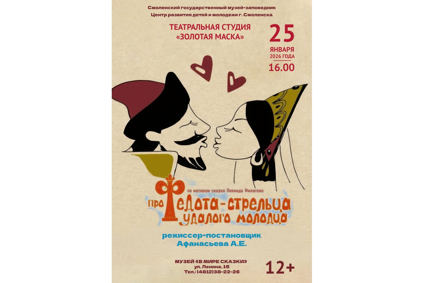 Его сыграют для вас юные актеры театральной студии «Золотая маска». Они представят свежую интерпретацию этой любимой многими истории, героем которой стал находчивый Федот-стрелец.