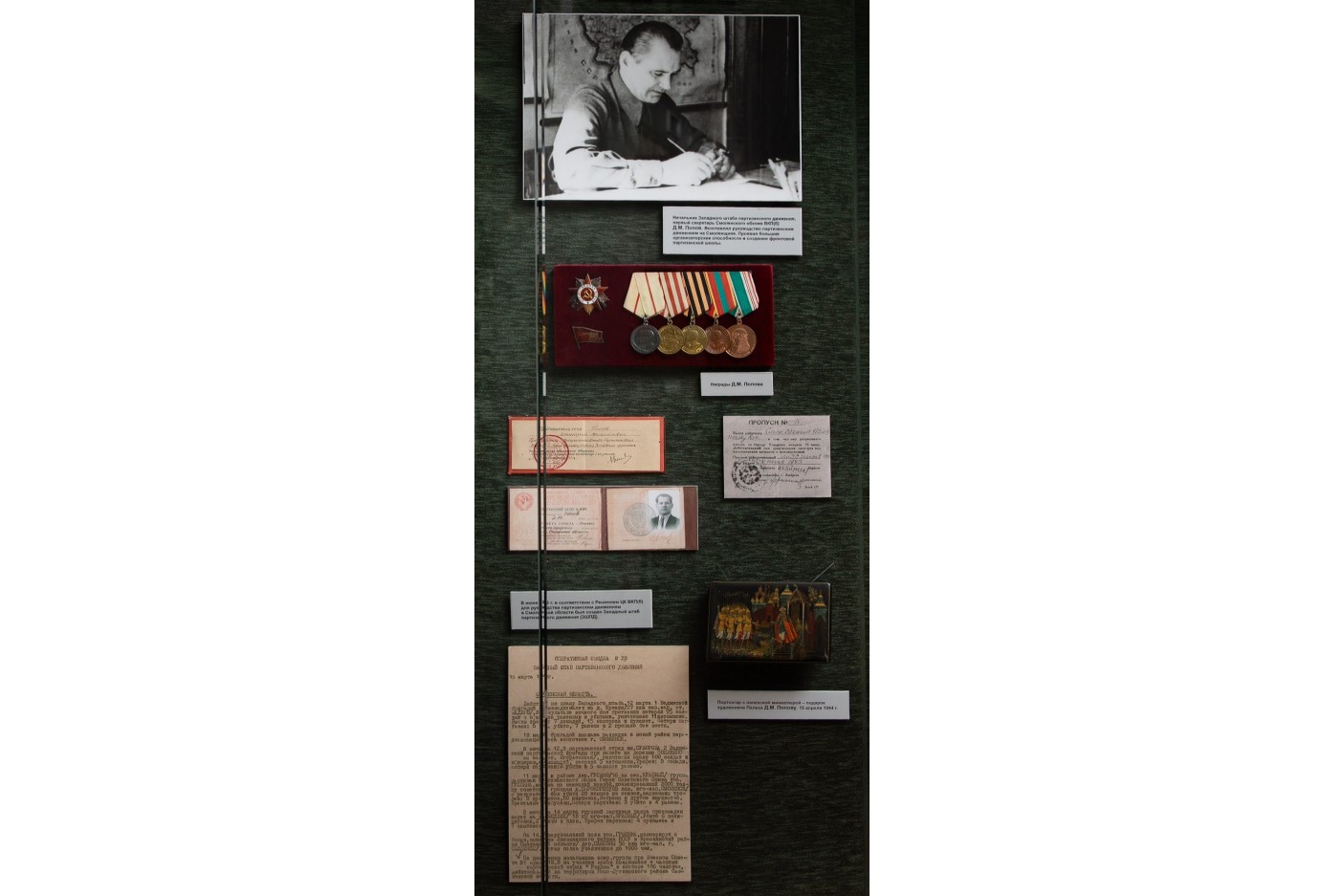 В настоящее время мемориальные вещи Дмитрия Попова экспонируются в отделе «Смоленщина в годы Великой Отечественной войны».