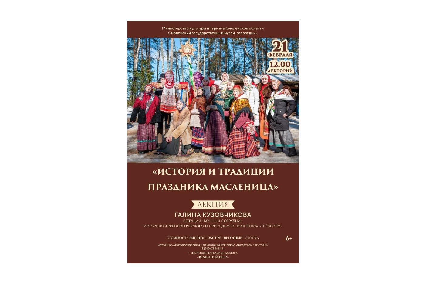 21 февраля в 12:00 состоится познавательное мероприятие, посвященное одному из самых ярких народных праздников. Галина Кузовчикова, ведущий научный сотрудник Историко-археологического и природного комплекса, проведет лекцию, раскрывающую историю Масленицы, начиная с древности до наших дней.