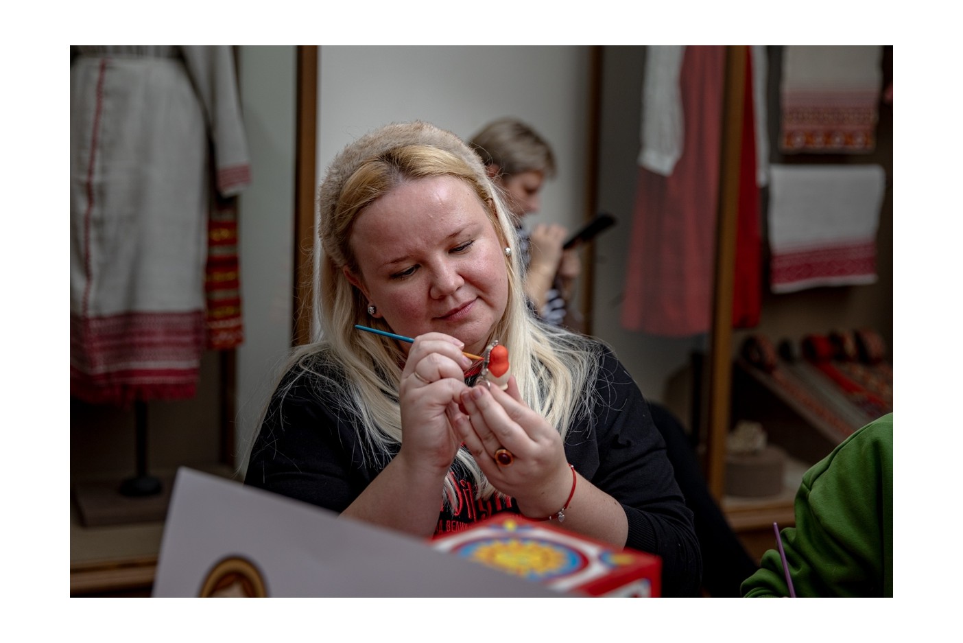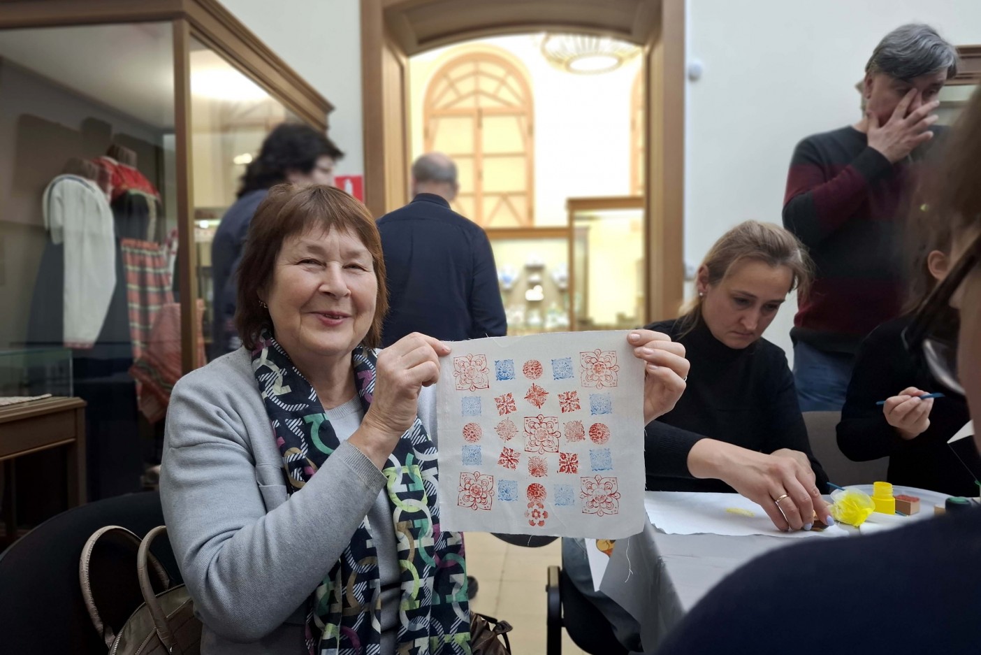 Посетители смогли принять участие в мастер-классах по росписи матрёшки и набойке по ткани. Проведение занятия в экспозиционном зале со старинными народными костюмами способствовало созданию неповторимой творческой атмосферы.