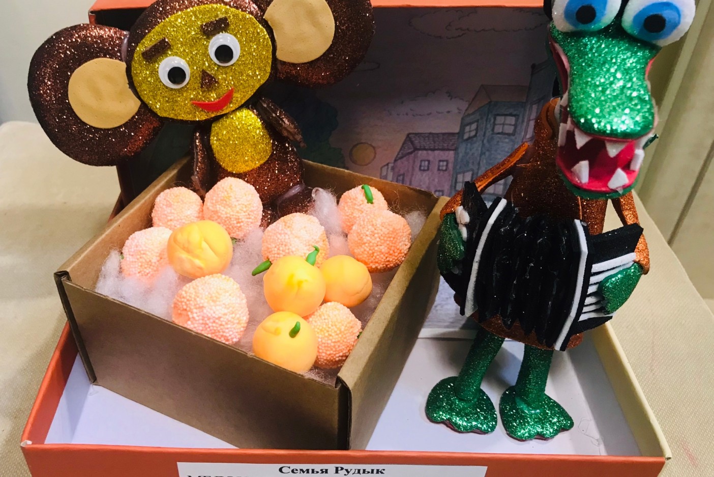 Смоленские дошколята-воспитанники «Эколого-биологического центра», детских садов «Надежда», «Виктория», «Ягодка», «Катюша», «Машенька», «Центра диагностики и консультирования» и других творческих коллективов вместе с родителями и педагогами с энтузиазмом и увлеченностью создали уникальные поделки, посвященные любимым персонажам: неугомонному и трогательному дуэту Волка и Зайца из «Ну, погоди!», милому Котёнку Гаву, неунывающему Винни-Пуху, обаятельному Чебурашке, дружной троице друзей из «Простоквашино», искреннему Малышу и озорному Карлсону.