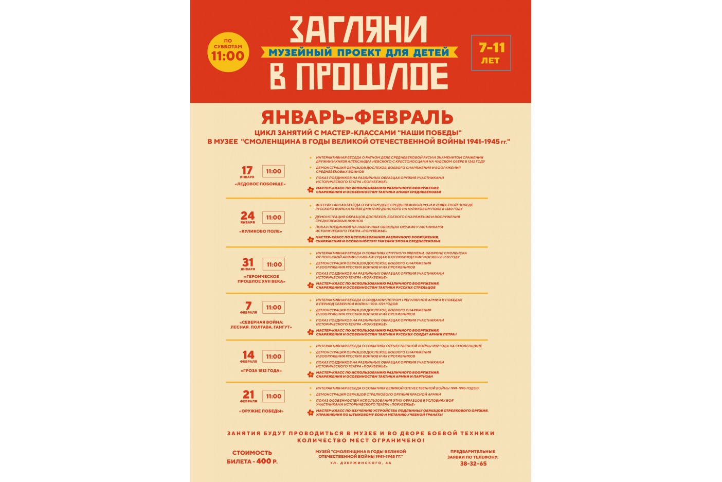 В рамках детского музейного проекта с 17 января по 21 февраля пройдет цикл занятий с мастер-классами под названием «Наши победы».