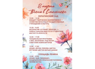 Смоленский государственный музей-заповедник основан в 1888 году и является одним из крупнейших музейных объединений в России. В его состав входят 16 музеев, которые располагаются в уникальных зданиях – памятниках архитектуры XVII - начала XX вв., а также в бывших усадьбах выдающихся смолян: известной меценатки княгини М.К. Тенишевой, композитора М.И. Глинки, путешественника Н.М. Пржевальского, поэта А.Т. Твардовского. Свыше 660 тысяч предметов сосредоточено в собрании музея: здесь хранятся коллекции археологии, этнографии, собрания русской и западноевропейской живописи, декоративно-прикладного искусства. Ежегодно в Смоленском музее-заповеднике открывается более 30 новых выставок; используются самые разнообразные формы работы с посетителями: фольклорные театрализованные праздники, костюмированные мероприятия, игры, конкурсы, интерактивные занятия, спектакли и концерты, мастер-классы, акции.