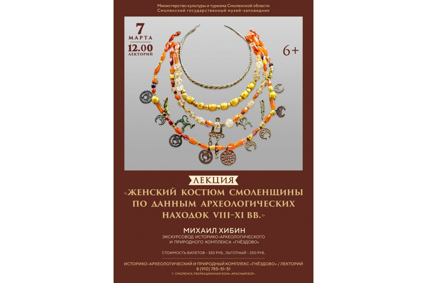 - Историко-археологический и природный комплекс "Гнездово" приглашает на лекцию «Женский костюм Смоленщины по данным археологических находок VIII – XI вв.»