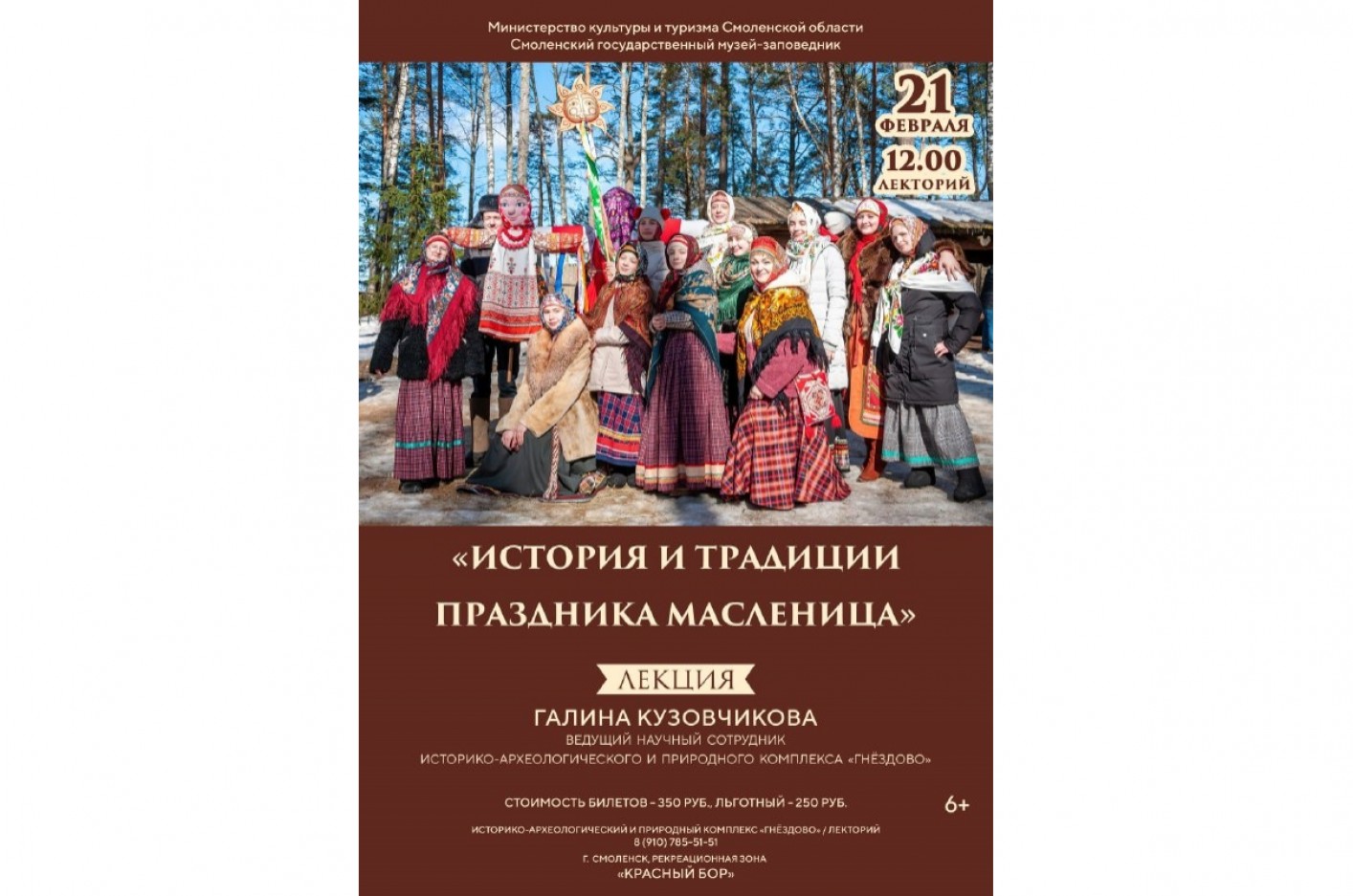 21 февраля в 12:00 состоится познавательное мероприятие, посвященное одному из самых ярких народных праздников. Галина Кузовчикова, ведущий научный сотрудник Историко-археологического и природного комплекса, проведет лекцию, раскрывающую историю Масленицы, начиная с древности до наших дней.