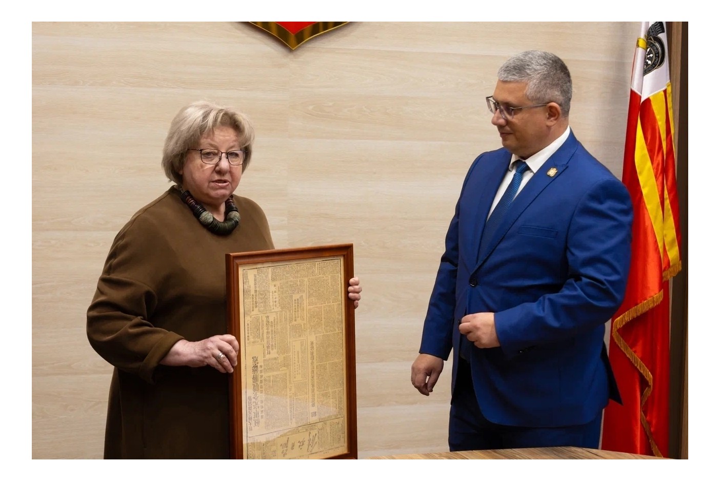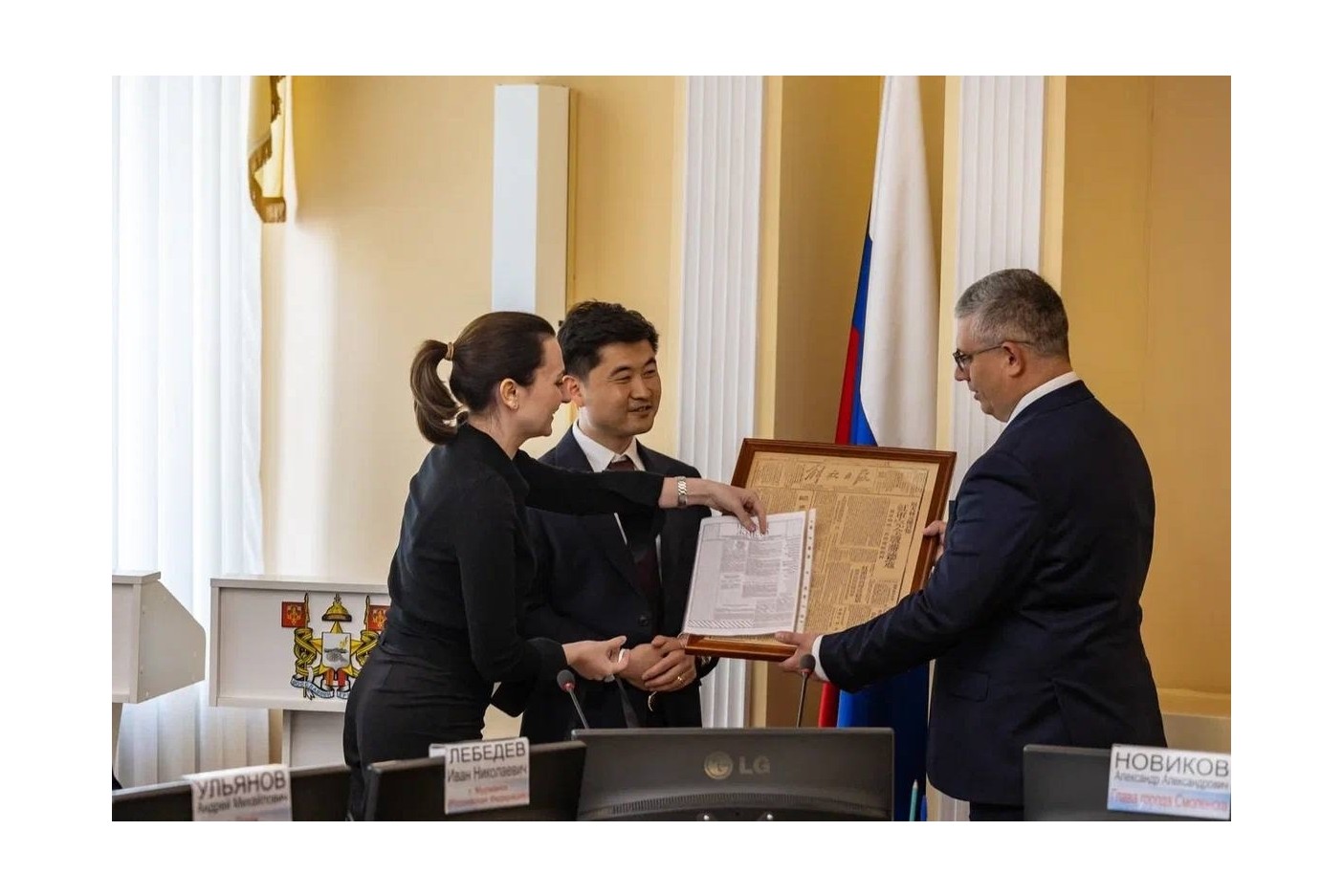 Уникальную газету и перевод ее содержания на русский язык преподнесли руководителю города члены официальной делегации Китайской Народной Республики из города Цуйфу. Они посетили Смоленск в рамках празднования 80-летия Великой Победы.