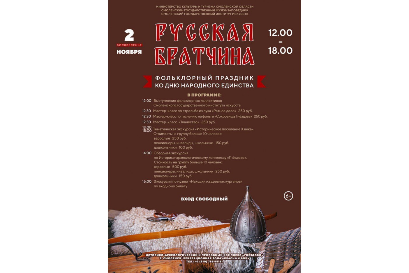 2 ноября в 12.00 начнется фольклорный праздник, посвященный Дню народного единства, на территории историко-археологического и природного комплекса «Гнездово».