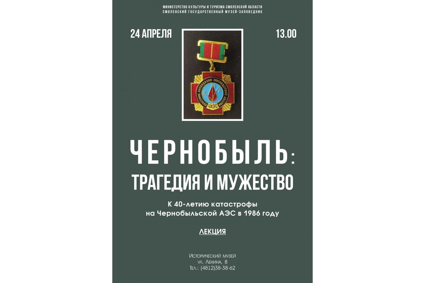 - Исторический музей приглашает на лекцию «Чернобыль: трагедия и мужество. Экспонаты из собрания Смоленского музея-заповедника»