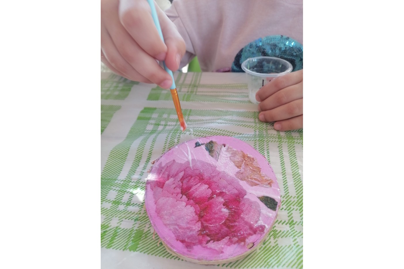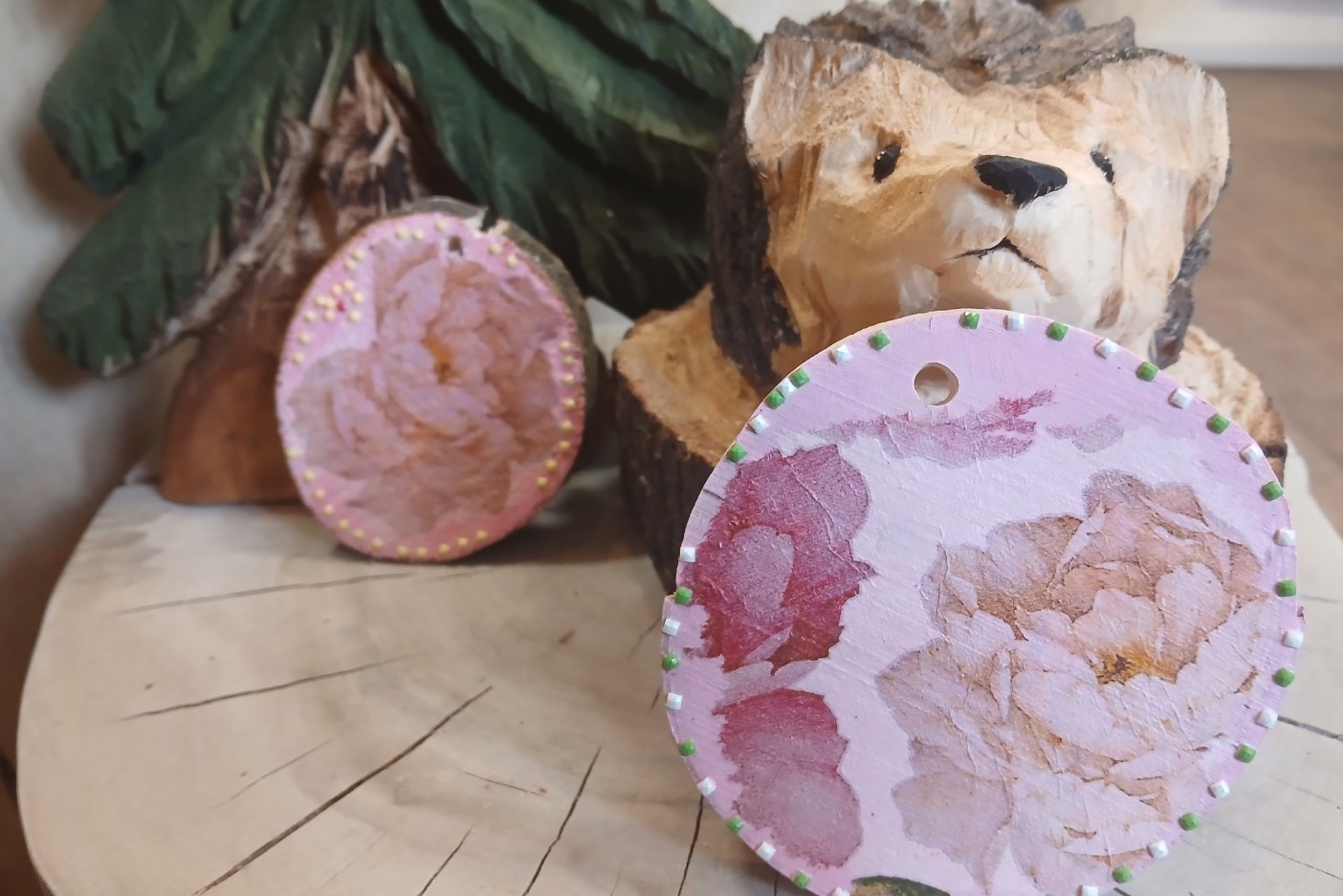 25 апреля в 14:30 и 26 апреля в 13:30 приглашаем вас принять участие в создании украшения для интерьера в виде подвески из деревянного спила с весенним цветочным узором.