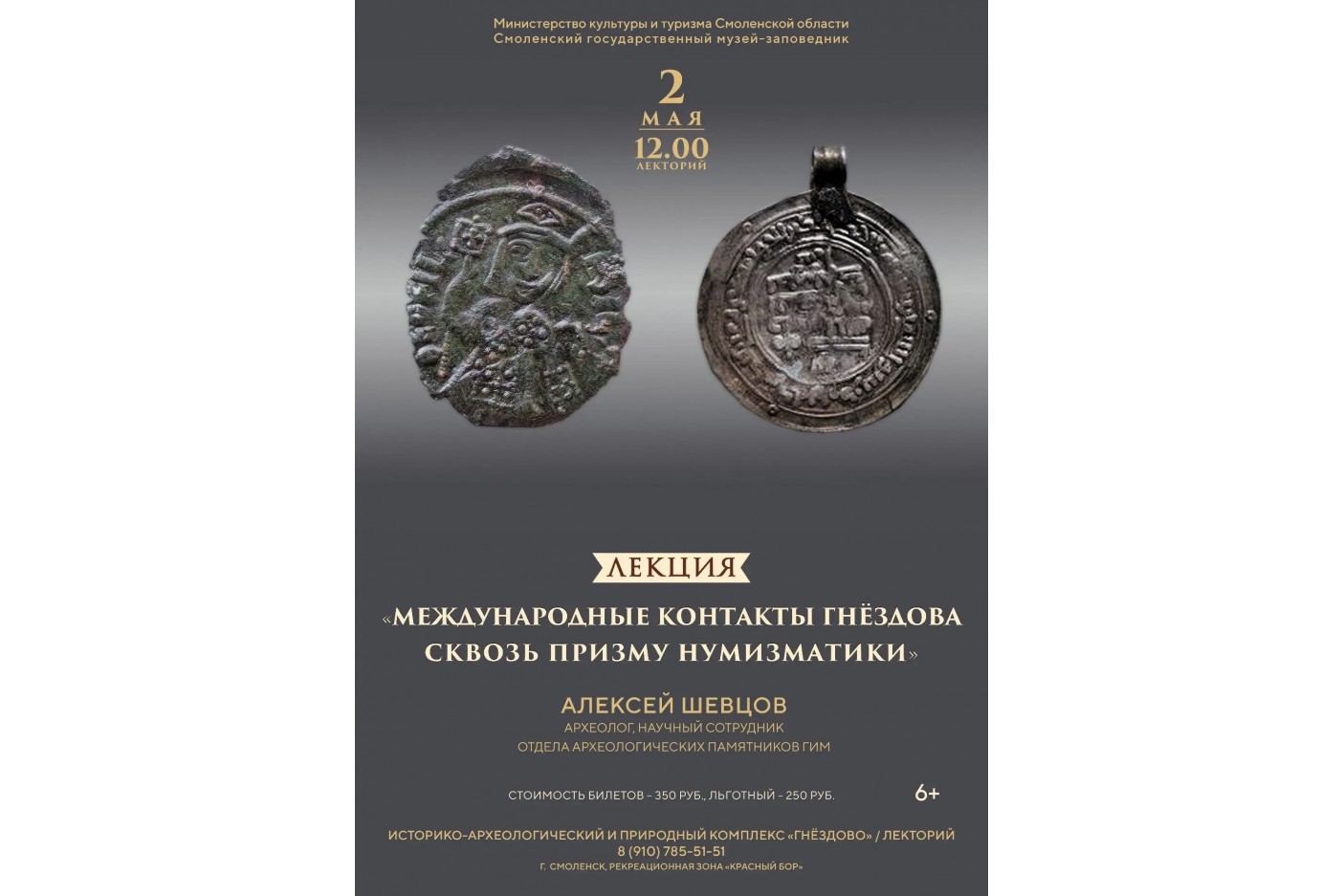 Учёный объяснит, как археологические находки монет Арабского халифата, Византии и других государств, найденных на территории Гнездовского археологического комплекса подтверждают активное участие купцов в международной торговле, как она осуществлялась и какие тайны может раскрыть монета в руках специалиста.