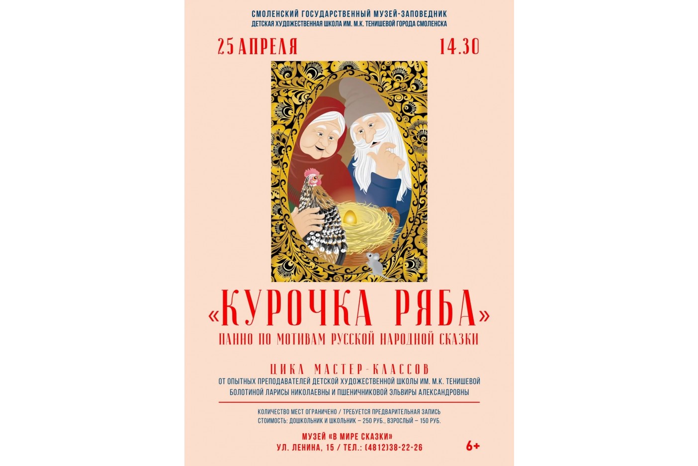 - Музей «В мире сказки» приглашает на мастер-класс по созданию панно «Курочка Ряба» (6+)
