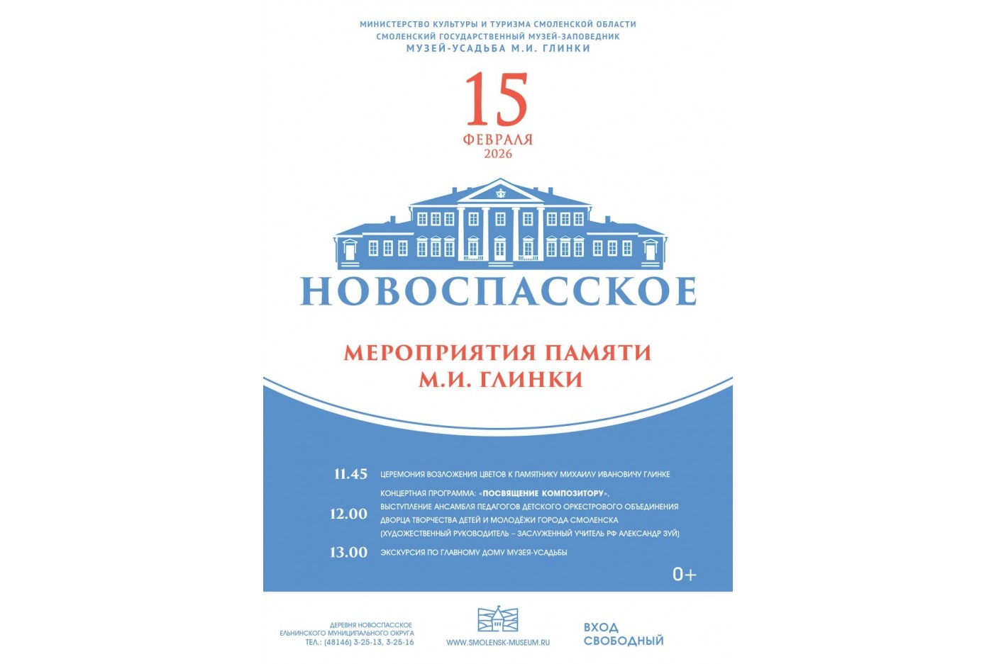 15 февраля в Музее-усадьбе М.И. Глинки в Новоспасском пройдет День памяти композитора