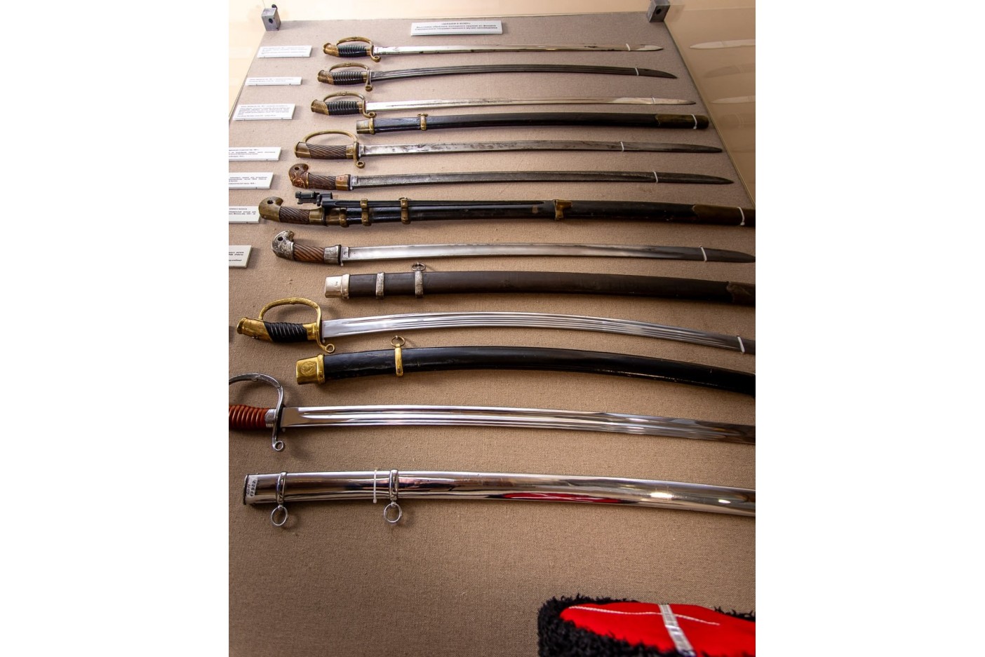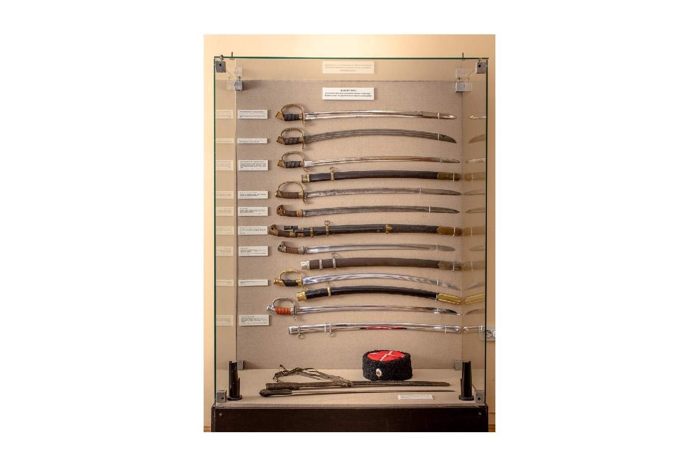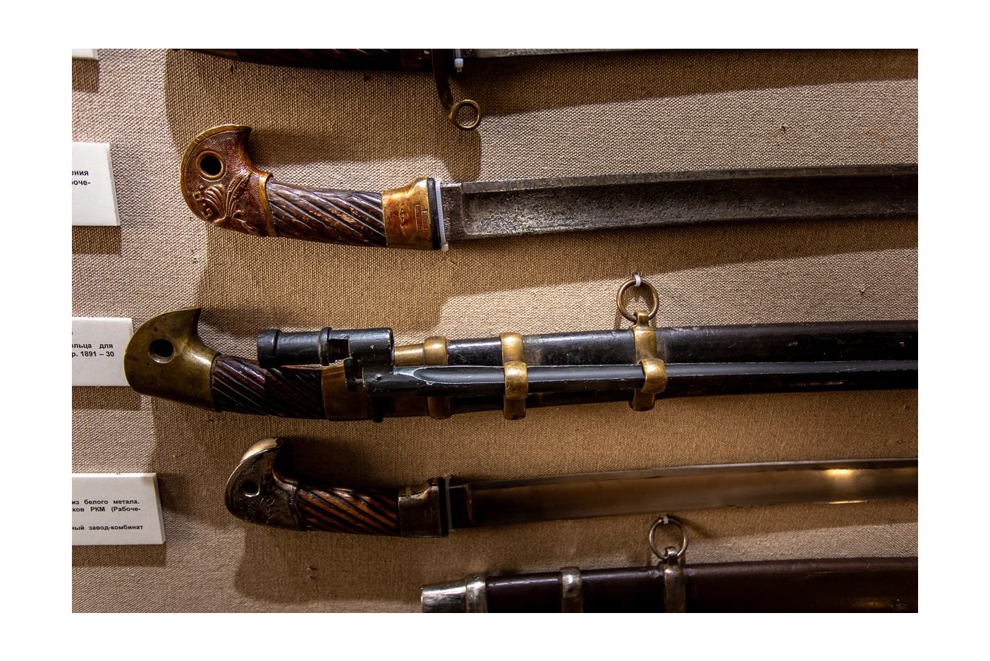 На выставке представлены основные образцы шашек, состоявшие на вооружении Русской Императорской Армии, РККА и Советской армии.
