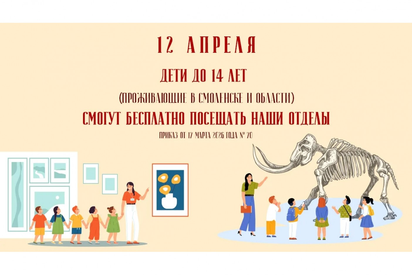С 1 апреля каждое второе воскресенье месяца дети до 14 лет, проживающие в Смоленске и области, смогут бесплатно посещать музеи и выставки Смоленского государственного музея-заповедника.