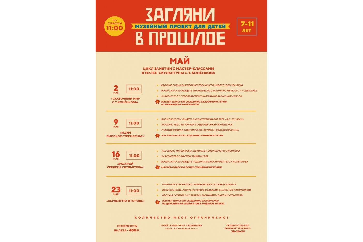 - В мае эстафету детского музейного проекта «Загляни в прошлое» продолжит музей скульптуры С.Т. Конёнкова