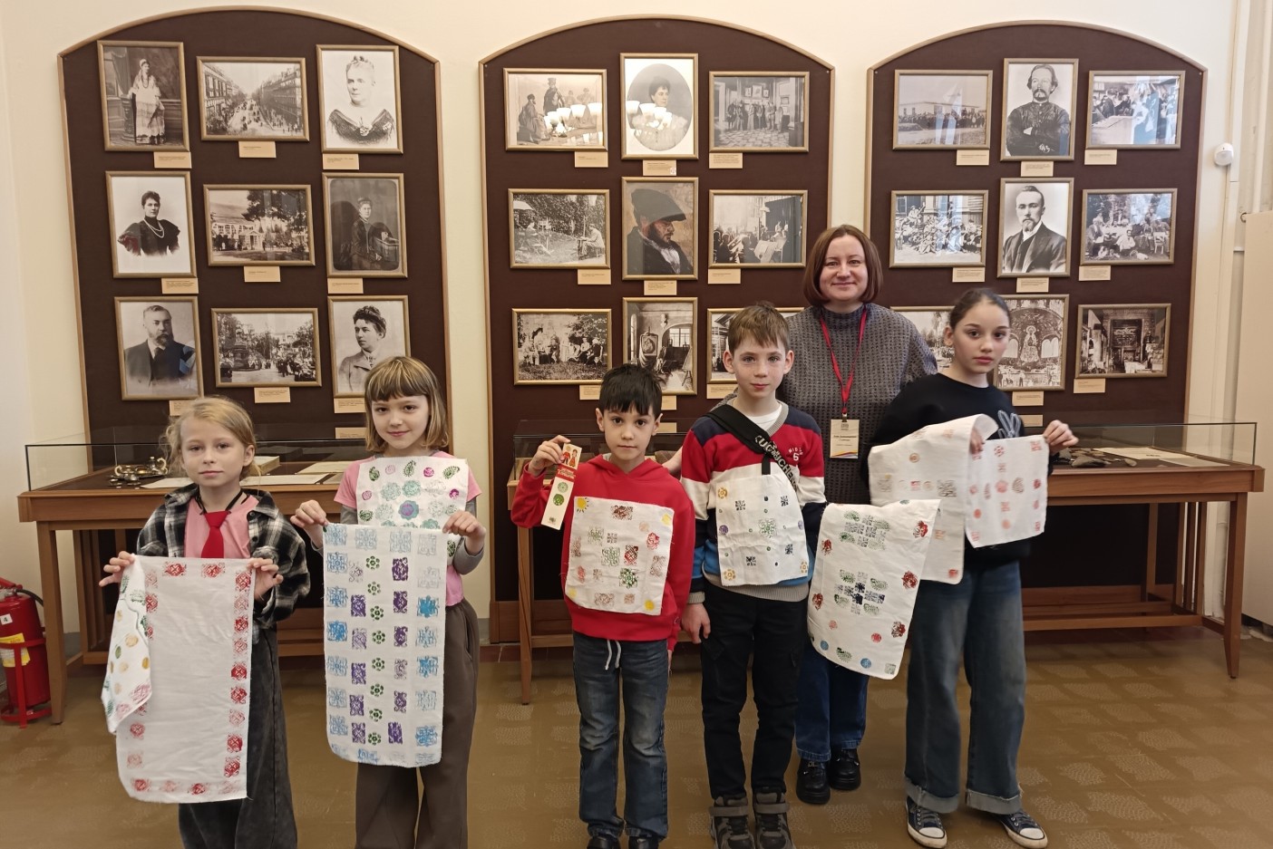 Юные посетители не только раскрыли секреты набивных узоров, но и познакомились с подлинными образцами старинных тканей с набивным рисунком из коллекции княгини Марии Клавдиевны Тенишевой.
