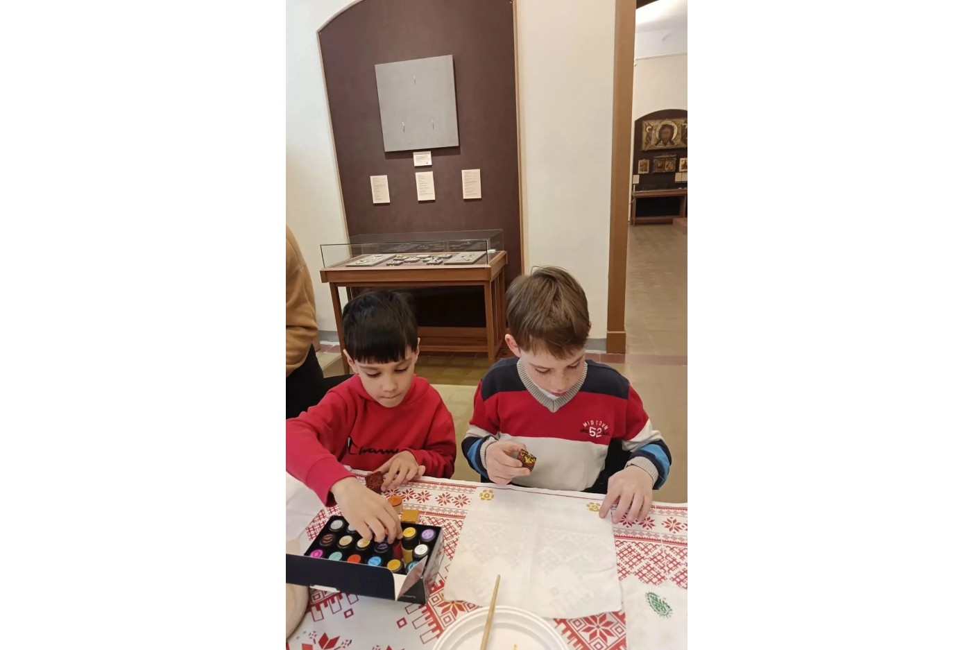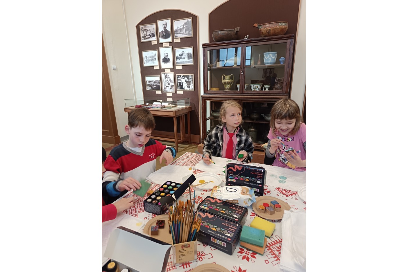 Затем в ходе мастер-класса ребята создали салфетку в технике набойки с использованием красок и специальных штампов, которая позволит сохранить приятные воспоминания о музейной встрече.