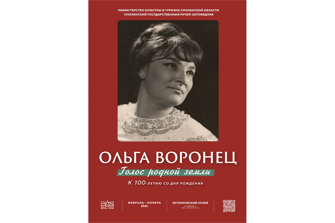 12 февраля исполняется 100 лет со дня рождения Народной артистки РСФСР, выдающейся исполнительницы народных и эстрадных песен, уроженки города Смоленска Ольги Борисовны Воронец (1926–2014). В эту памятную дату в Историческом музее в 14.00 состоится открытие юбилейной выставки «Ольга Воронец. Голос родной земли. К 100-летию со дня рождения».